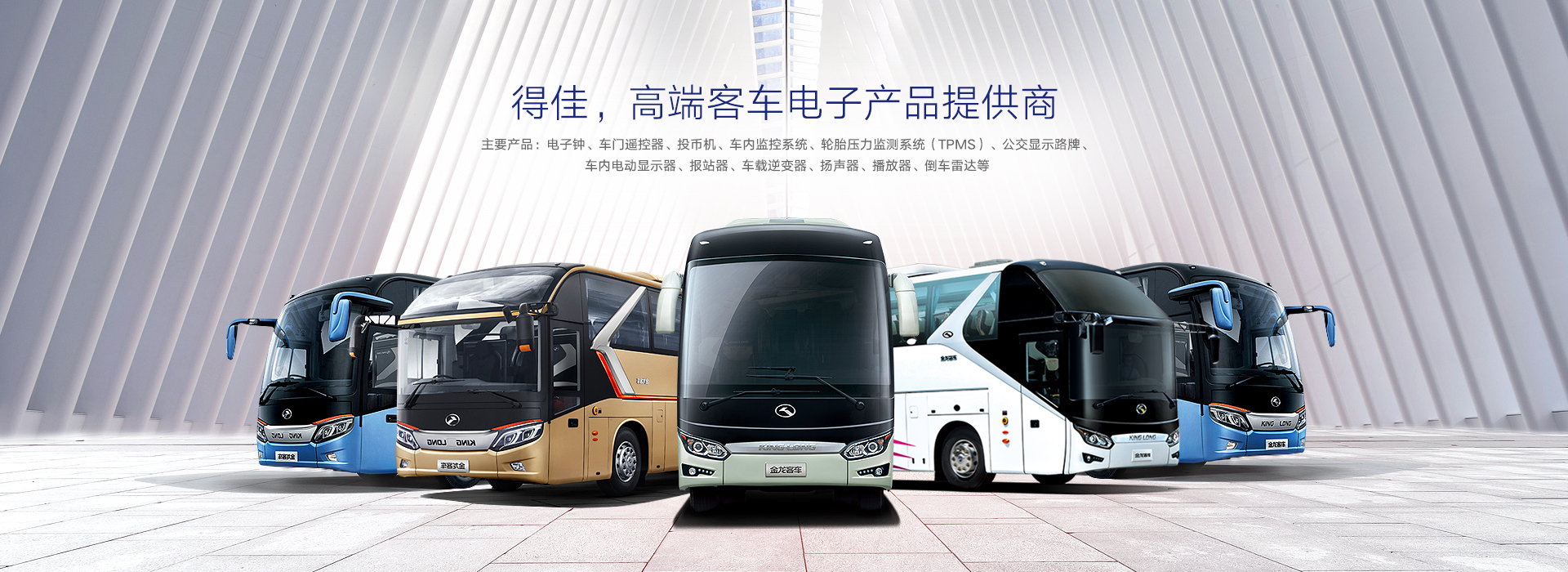公司憑借行業(yè)先進(jìn)的技術(shù)水平和優(yōu)秀的設(shè)計開發(fā)團隊及能力,為國內(nèi)外客車廠長期提供OEM和ODM業(yè)務(wù)。公司主要產(chǎn)品:電子鐘、車門遙控器、投幣機、車內(nèi)監(jiān)控系統(tǒng)、輪胎壓力監(jiān)測系統(tǒng)(TPMS)、公交顯示路牌、公交扶手、車內(nèi)電動顯示器、報站器、車載逆變器、揚聲器、播放器、倒車?yán)走_(dá)等。